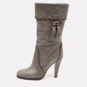 حذاء بوت للركبة غوتشي جلد رصاصي بامبو بشراشيب مقاس 36.5
