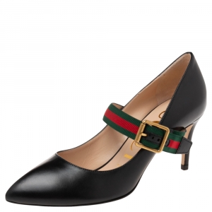 حذاء كعب عالي غوتشي سيلفي ماري جين جلد أسود مقاس 36