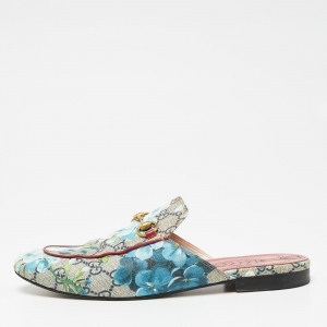 حذاء مولز غوتشي فلات برنستاون كانفاس مزهر سوبريم جي جي بيج/ أزرق هورسبيت مقاس 39.5