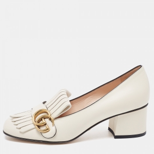 حذاء كعب عالي غوتشي هورسبيت دورسي جلد وكانفاس جي جي بيج/كريمي مقاس 40