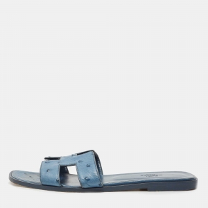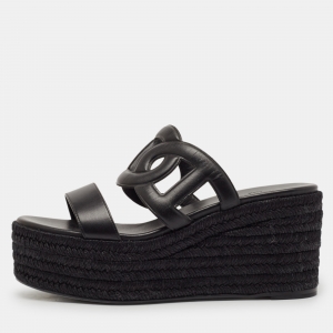 حذاء سلايد هيرمس أوران جلد برّاق أسود مقاس 39.5
