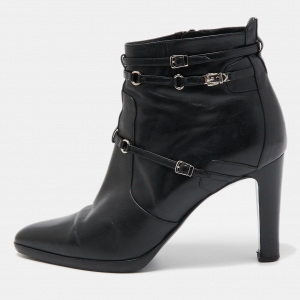 صندل هيرميس نايْت فتحة كعب جلد أسود مقاس 37.5