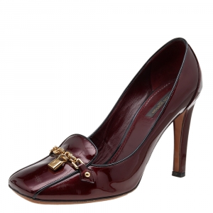 Pre Owned حذاء كعب عالي لوي فيتون جلد أسود لامع / عنابي  بسلسلة قفل مقاس 39