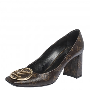 حذاء كعب عالي لوي فيتون فيتش كانفاس مونوغرامي بني وجلد مقدمة سوداء مقاس 37.5