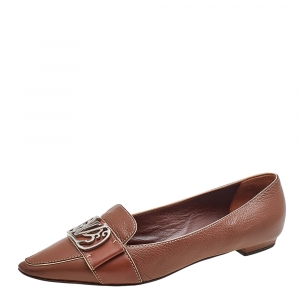 حذاء فلات باليه لوي فيتون مزخرف شعار جلد بني مقاس 38.5
