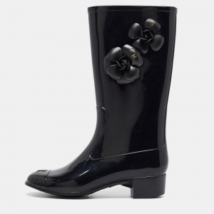 حذاء بوت للكاحل شانيل جلد براءات اختراع أسود مزين بشعار الماركة سي سي مقاس 40