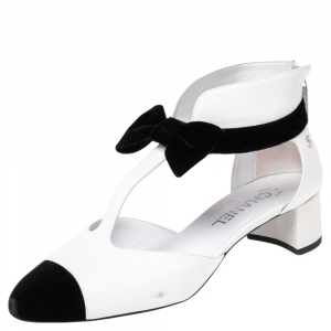 بوت للكاحل شانيل قطيفة وجلد أبيض/أسود سي سي غطاء مقدمة مقاس 39