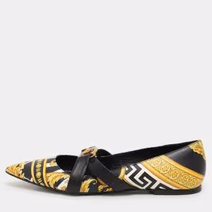 حذاء باليرينا فلات فيرساتشي سافاج وايلد باروكو جلد أصفر/أسود مقاس 38