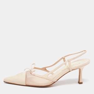 صندل شانيل جلد كريمي مقدمة مفتوحة بحزام للكاحل مقاس 38