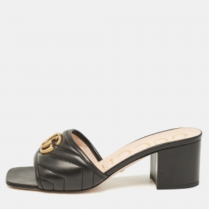 صندل غوتشي مارمونت جي جي مسطح جلد أسود مقاس 37.5