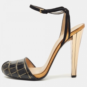 صندل غوتشي منصة كعب سيور للكاحل جلد براءة أزرق كلوديي مزين بمسامير الحصان مقاس 39