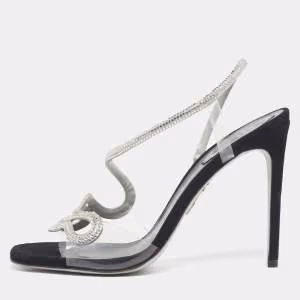 صندل رينيه كوفيلّا جلد سويدي وقماش أسود مزخرف بالكريستال بحزام خلفي مقاس 37.5