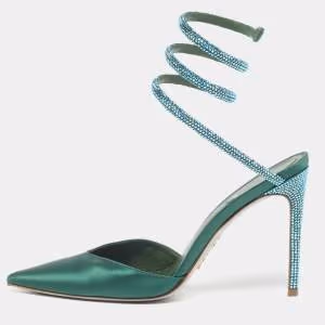 حذاء كعب عالي رينيه كوفيللا مخمل أزرق داكن مرصع بالكريستال برباط حول الكاحل مقاس 38