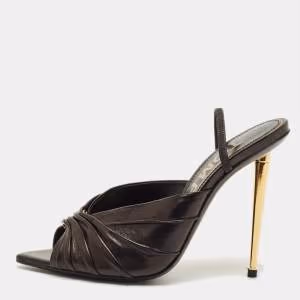 صندل توم فورد جلد أسود بقفل وحزام للكاحل مقاس 39
