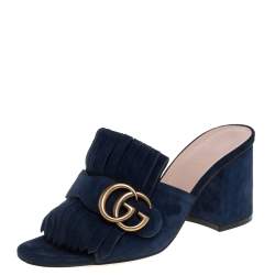 صندل سلايد غوتشي مارمونت جي جي مزين شراشيب سويدي أزرق كحلي مقاس 35.5