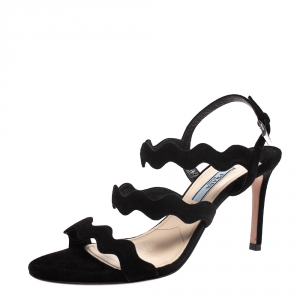 صندل برادا بسيور مموجه و ببمقدمة مفتوحة سويدي أسود مقاس 36.5