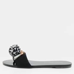 قبقاب موسكينو جلد أسود بشعار مقاس 37