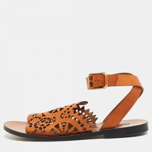 صندل روبرتو كافالي جلد بني/أسود مزخرف كريستال بسوار كاحل مقاس 38