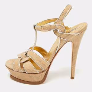 صندل لوريبلو سيور متعاكسة و كعب روكي جلد مجدول بني و ذهبي مقاس 38