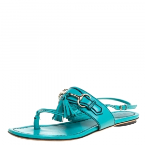 صندل لوي فيتون رباط كاحل جلد لامع و حبل مجدول متعرج كريمي و أزرق مقاس 39.5