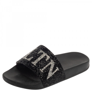 حذاء مولز سيرجيو روسى مقدمة مدببة قماش غليتر أسود / فضى مقاس 40