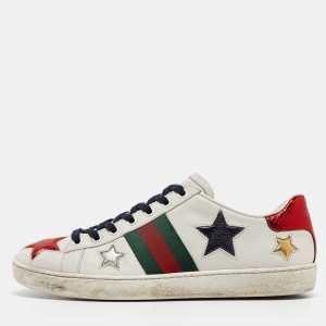 حذاء رياضى غوتشى أربطة رقعة فيونكة زخرفة أيس جلد أبيض مقاس 37