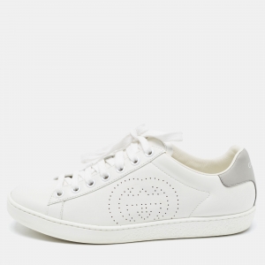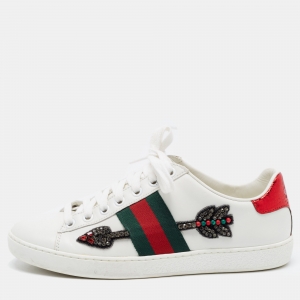 حذاء رياضي غوتشي أيس جلد أبيض مرصع سبايك ولؤلؤ صناعي عنق منخفض مقاس 36.5
