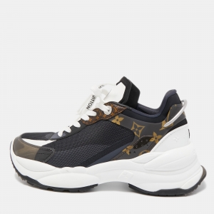 حذاء رياضي لوي فيتون رن أواي من قماش المونوغرام السويدي والشبكي أسود مقاس 38