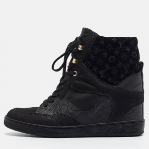 حذاء رياضي لوي فيتون سويدي وجلد أسود بعنق منخفض مقاس 38.5