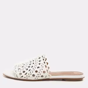 صندل علايا جلد أبيض وبيج زهري بسير حول الكاحل مقاس 39.5