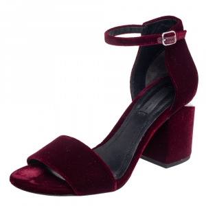 Pre Owned صندل أليكساندر ماكوين أبي لوسيت قطيفة عنابي كعب مائل مقاس 37.5