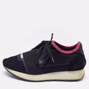 حذاء رياضي بالنسياغا ريس رانر جلد محكم و شبك أسود مقاس 37