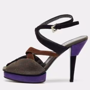 صندل سير كاحل برادا ساتان و سويدي أخضر/أرجواني مقاس 38.5