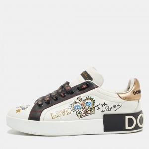 حذاء رياضي دولتشي أند غابانا طباعة ليوبارد متعددة الألوان جلد وزبدة منخفض من الأعلى مقاس 39.5