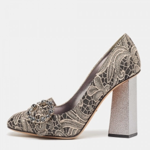 حذاء ميول فلات دولتشي آند غابانا رمادي مزخرف بكريستال دانتيل مقاس 37