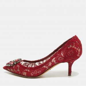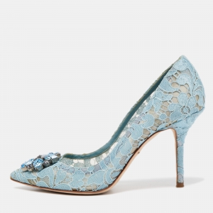 حذاء كعب عالي دولتشي أند غابانا بيلوتشي دانتيل بيج بزخارف كريستال وبمقدمة مدببة مقاس 36