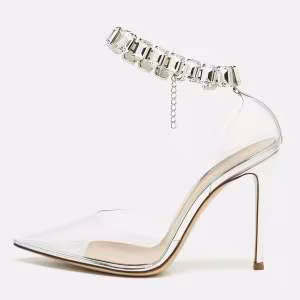 حذاء كعب عالي جيانفيتو روسي مزين شفافية/أخضر بي في سي و سويدي هورتنسيا مقاس 39.5