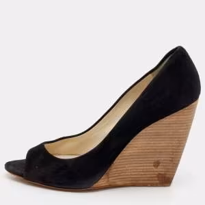 حذاء كعب عالي ميو ميو سويدي أسود نعل سميك مقاس 39.5