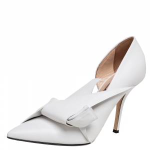 حذاء كعب عالى إن 21 مقدمة مدببة فيونكة تجريدى جلد أبيض مقاس 39