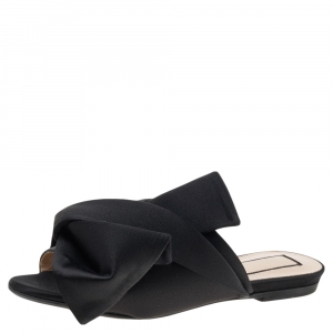 صندل إن21 فلات عقدة مزخرف ساتان أسود مقاس 38