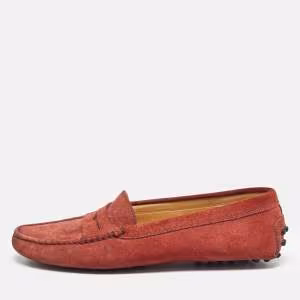 حذاء لوفرز سليب أون تودز بيني جلد سويدي أحمر مقاس 36.5