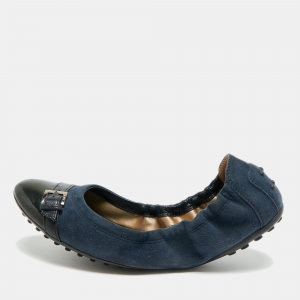 حذاء باليرينا فلات تودز مجعد إبزيم سويدي و جلدي فضي/أسود مقاس 38