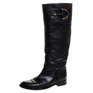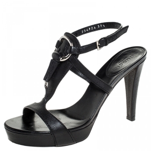حذاء كعب عالي غوتشي مقدمة مفتوحة هورسيبت جلد ذهبي مقاس 37.5