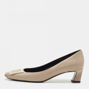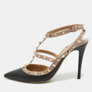 صندل أوسكار دي لارينتا جلد وردي لامع كعب روكي مقاس 39.5