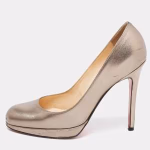 حذاء كعب عالي كريستيان لوبوتان نيو سمبل جلد معدني مقاس 37.5