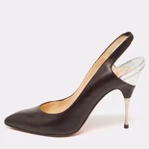 حذاء كعب عالي كريستيان لوبوتان أرماديلو جلد بني داكن مقاس 38.5