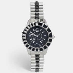 ساعة يد نسائية ديور شريستال ألماس ستانلس ستيل سوداء 33 مم