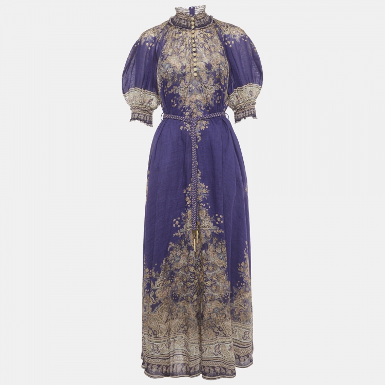 مملوكة مسبقًا فستان زيمرمان ماكسي أرجواني نقش بيزلي مزيج كتان أنيكي سوينج مقاس متوسط