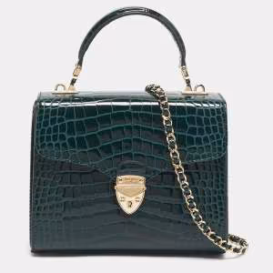 Aspinal of London Green Croc Emboosed Patent Leather Trinket Top Handle Bag