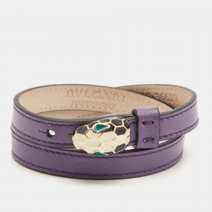 Bvlgari Serpenti Forever Leather Enamel Gold Tone Double Wrap Bracelet